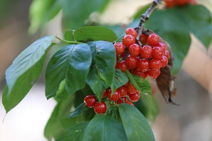 果柄鮮綠如翡翠,櫻桃殷紅如像瑪瑙,形如珍珠,晶瑩剔透,閃耀著明亮的光澤。汁多肉厚,酸酸甜甜,一口下去獨(dú)特的口感喚醒沉睡的味蕾,令人口齒生津。