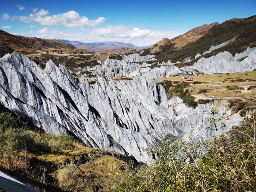 其實,這種巖石不僅出現(xiàn)在道孚縣,沿鮮水河斷裂帶,曾形成過長達上百公里的糜棱巖帶,但有幸成為石林的,卻唯有墨石公園。