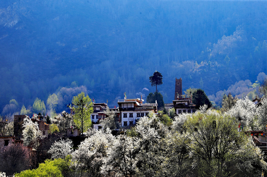 雪山、碉樓、藏寨、美人共同勾勒出一幅精美絕倫的春日藏寨梨花圖。春日里的梨花造就了丹巴的“三絕”。“一絕”即梨花配藏寨;“二絕”即梨花配碉樓;“三絕”即梨花配美人。