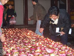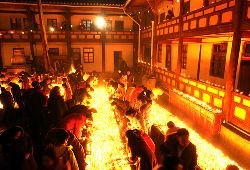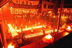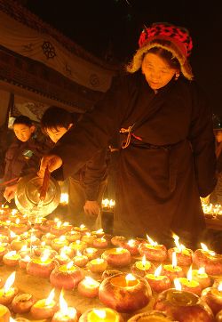 傳說藏歷十月二十五日,是藏傳佛教格魯巴(俗稱黃教)創(chuàng)始人宗喀巴大師圓寂成佛的日子。為了紀念這位杰出的宗教領袖,藏區(qū)各黃教寺廟和信徒于藏歷十月二十五日,舉行誦經(jīng)、磕頭,燈供儀式等隆重的祭祀活動,祭祀宗喀巴大師在天之靈和祈愿大師賜與善良的人們以吉祥幸福。