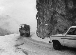 一九九七年十一月二十四日,連續(xù)多日大雪,把整個(gè)二郎山裹得嚴(yán)嚴(yán)實(shí)實(shí),白茫茫一片。陣陣山風(fēng)吹過(guò),大霧就像瀑布一樣,從山頂直往下翻涌?jī)A瀉。 一大早,州交通局打冰除雪排險(xiǎn)的干部職工就從二郎山管理站直奔山埡口。載有防滑砂的大貨車穿迷霧,繞山梁,向山頂埡口疾馳。由于氣溫太低,霧又大,車上的擋風(fēng)玻璃很快就結(jié)下了冰,路面打滑非常嚴(yán)重。前面車輛堵了起來(lái),排險(xiǎn)人員只好下車步行。 大霧彌漫,能見(jiàn)度很底,陰霾的天空又飄起了紛紛揚(yáng)揚(yáng)的雪花,剌骨的寒風(fēng)陣陣襲來(lái),只聽(tīng)見(jiàn)車蓬布在風(fēng)中“嗶剝”作響,卻看不見(jiàn)前面到底堵了多少車。排險(xiǎn)人員只好相互攙扶踩著冰滑的邊路艱難地向行。好不容易來(lái)到堵在最前面的車子面前。原來(lái)是一輛載著原木的東風(fēng)牌大貨車側(cè)滑在公路上,把整個(gè)公路堵死了。 局領(lǐng)導(dǎo)當(dāng)即指揮大家用鋼釬、鐵鎬和鋤頭處理冰道,沒(méi)有撮箕,大家借來(lái)加水桶裝運(yùn)冰雪……氣溫仍在急劇下降,剛從雪堆里刨出來(lái)的路,又被結(jié)起一層冰,就像地面上澆上了油,這就是冰雪道上有名的“桐油凌”。 有二位老同志不顧年老體弱,積極參與打冰除雪,一個(gè)在打冰時(shí),被彈起的冰碴把腦門劃了一個(gè)口子,鮮血直往外冒。有人想幫他包扎,他堅(jiān)決不干,自己就用手帕按住,把帽子向下拉蓋住傷口就算了。血從手帕中浸透出來(lái),與眉毛上的冰凌結(jié)在一起。氣溫太低,冰層太厚,十字鎬每挖一下,多數(shù)情況下也就是挖下一個(gè)白點(diǎn)而已。不一會(huì)兒,另一位老同志已是滿頭大汗,大家勸他休息一下,他卻說(shuō):趁著現(xiàn)在雪不是太大,早點(diǎn)把主道上的冰雪多除點(diǎn),過(guò)往二郎山的車輛就多一份安全。 排險(xiǎn)人員的手凍紅了,刨冰雪碰傷的指頭還流著鮮血,身上蒸發(fā)的熱氣,把衣領(lǐng)口、袖子口和褲子口結(jié)成了冰,可是,誰(shuí)也沒(méi)有吭一聲。 ……受堵車輛終于向前開(kāi)動(dòng)了。 風(fēng),越刮越猛,雪,越來(lái)越大。 防滑車在冰雪道上艱難地向前爬行著,車箱上面的職工們揮舞的洋鏟向路面撒著防滑砂。一路上風(fēng)絞雪,防滑車象一頭不聽(tīng)使喚的牛,顛簸、亂竄,好不容易才來(lái)到260(二郎山最險(xiǎn)處),對(duì)這里“桐油凌”路面進(jìn)行重點(diǎn)防滑處理后,防滑車又返回來(lái),開(kāi)始向山頂進(jìn)發(fā)……風(fēng)雪二郎山上打冰除雪、防滑排險(xiǎn),看似沒(méi)有驚天動(dòng)地的壯舉,身臨其景才知其艱難辛苦。難怪當(dāng)年每每經(jīng)過(guò)二郎山冰天雪地奇險(xiǎn)路段的車,都會(huì)向風(fēng)雪中屹立路邊的交通系統(tǒng)排險(xiǎn)保暢通的職工們鳴笛致敬,風(fēng)雪中的那份情彌足珍貴。 川藏線上的老司機(jī)傳下來(lái)一首傷心的順口溜:“車過(guò)二郎山,如闖鬼門關(guān),萬(wàn)幸不翻車,也要凍三天!”其險(xiǎn)峻實(shí)為罕見(jiàn),尤其是途經(jīng)二郎山260(公路公樁)處,曾被淡虎色變的人稱為“鬼招手”的險(xiǎn)路段。 1983年1月3日,有著安全行車44萬(wàn)公里記錄的一位駕駛員開(kāi)著輛嶄新的東風(fēng)牌貨車,同行還有兩名職工,夜行二郎山,在彌天大霧中神秘地“失蹤”了。十五天后,搜山的人才用望遠(yuǎn)鏡看到260公里路樁處的山崖下,有一塊汽車破篷布掛在樹(shù)枝,猶如招魂的凄厲幌幡在冷風(fēng)中招搖晃動(dòng)。鋼纜繩吊著搜山的人下到崖下400米深處的谷底。扒開(kāi)一座座雪堆,叫人汗毛倒豎:雪堆下,盡是廢大梁、爛車廂、銹車頭和支離破碎的汽車,足有一個(gè)汽車連!一輛不知埋了多久的卡車廂里牛肉已腐爛,駕駛室里坐著三具發(fā)黑的僵尸……其狀慘不忍睹!