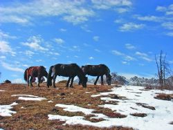 在高原,藍(lán)天、白云、白雪、冬樹、駿馬、無際曠野等都是美物,而這些,在2006年12月的某個雪后天晴的日子齊聚馬鞍山頂,讓我們飽享了一餐視覺盛宴,并印象深刻。