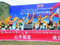 上午十點(diǎn)半,隨著一陣歡快的音樂聲,康巴衛(wèi)視2014年“走基層”歡樂藏區(qū)行活動(dòng)在甲根壩鄉(xiāng)木雅村正式拉開序幕。