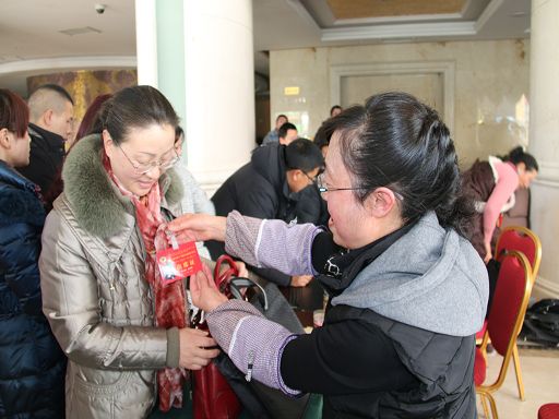 州政協(xié)第十二屆第四次會(huì)議委員報(bào)到現(xiàn)場(chǎng)。