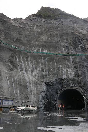 兩河口水電站采用土心墻堆石壩,最大壩高達305米,居世界同類壩型前列。樞紐建筑物由礫石土心墻堆石壩、溢洪道、泄洪洞、放空洞、發(fā)電廠房、引水及尾水建筑物等組成。“兩河口大壩采用當?shù)夭牧辖ㄔO,壩高295米,是目前中國已建或在建的第一高土石壩。”雅礱江流域水電開發(fā)有限公司相關負責人介紹說,“國家體育場‘鳥巢’體積約680萬立方米,壩體總填筑量4160萬立方米,相當于6個‘鳥巢’的體積。”