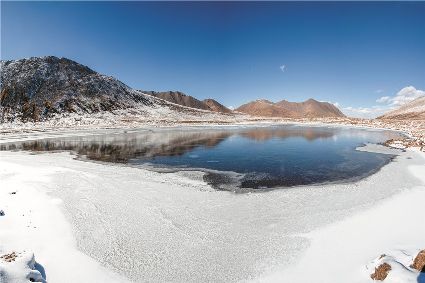 對常年生活在這片土地上的人們來說,一夜便能厚積沒履的大雪早已見慣不驚,但走出縣城一瞥石渠秋日的雪景,依舊讓人不由驚嘆大自然的鬼斧神工。不似平原、丘陵之妖嬈,石渠的雪景是宏偉壯麗的、是氣勢磅礴的,置身其中頓感渺小,心中唯余對自然之敬畏。在25191平方公里的土地上,無論草原或是山巒,入眼皆是一片耀眼的銀白,在頭頂萬里無云的湛藍(lán)天空的輝映下,整個石渠只剩干凈的藍(lán)和純潔的白。