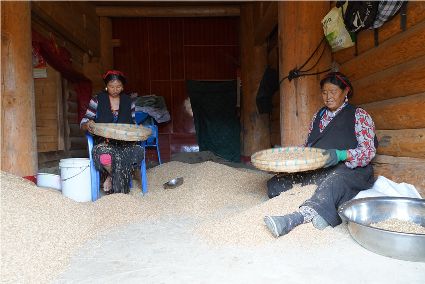 在甘孜縣仁果鄉(xiāng)的仁果下村,當(dāng)大家走進村民恩珠澤仁家開滿了各色鮮花的院落時,都不約而同的發(fā)出了贊嘆之聲,這是恩珠澤仁在當(dāng)?shù)厍皝碓氐牡谝粫浀闹С窒?,辦起的一家正準(zhǔn)備開張接待游客的民居接待點,他告訴我們說,他真心的相信,甘孜的格薩爾機場通航后,這里就一定是他奔向小康的起點,從這里開始,他對未來充滿了信心。