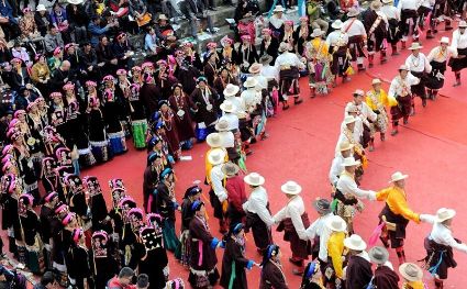 10月26日,2017中國四川丹巴嘉絨藏族鄉(xiāng)村風情節(jié)在巴底鎮(zhèn)開幕。本次風情節(jié)集古碉藏寨、嘉絨選美、大型鍋莊、民族歌舞、精美服飾、農耕體驗以及田園觀光等為一體,既是一場風情別致的民族文化盛會,也是一場如詩如畫的鄉(xiāng)村旅游大餐。30名巴底片區(qū)(聶呷鄉(xiāng)、巴旺鄉(xiāng)、巴底鎮(zhèn))的姑娘們經過形體和才藝展示兩個環(huán)節(jié),最后評選出金花1名,銀花2名,石榴花3名。本次活動評選標準總分為10分,29號選手莫莫以9.85分的優(yōu)異成績榮獲本次風情節(jié)“金花”稱號,10號選手卓瑪和6號選手孟江榮獲“銀花”稱號,28號選手扎西瑪初、16號選手仁千以及11號選手德江初榮獲“石榴花”稱號。 丹巴嘉絨藏族風情節(jié)歷史悠久,至少可以追溯到唐宋時期,最早是人們?yōu)榱藨c祝豐收舉行的慶?;顒?,每當夏收或秋收之后的農閑期間,人們各自帶著釀制的新酒,聚集在一起,一邊品嘗美酒,一邊跳起鍋莊,盡情歡度豐收之后的閑暇時光,祛除一年的疲勞辛苦,久而久之便形成一種習俗沿襲下來,活動的規(guī)模越來越大,內容也越來越豐富。活動內容主要包括:品嘗美酒、鍋莊舞蹈演賽、山歌情歌對唱、評選美女、民間雜耍等活動。據了解,2017丹巴嘉絨藏族鄉(xiāng)村風情節(jié)將持續(xù)至28日,還將在東谷鄉(xiāng)、革什扎鄉(xiāng)、梭坡鄉(xiāng)開展一系列豐富多彩、獨具特色的民俗表演活動。