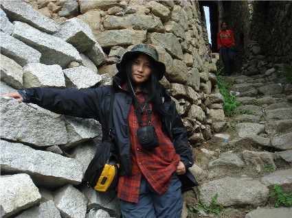 那天清晨,我們一行就乘坐曉雨哥所開轎車從康定城出發(fā)了。從顯得很懸的山路上到位于山頂平壩的嵐安古鎮(zhèn)時,才8點過一點。朝鎮(zhèn)里走去,先后見到了從地里背洋芋回家的小孩、從地里收了豆菽枯藤的中年人等。