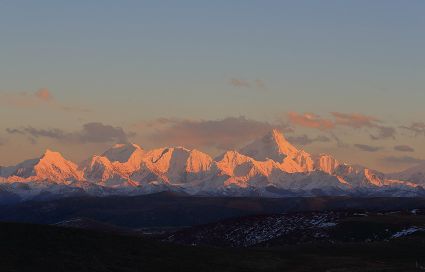 這是川藏公路高爾寺山埡口拍攝的夕陽下的雅拉雪山。