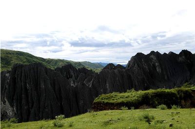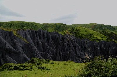 墨石公園,是中國唯一高原石林景觀,被譽為“中國最美景觀大道第八美 ”。受第四紀新構(gòu)造運動影響,隨著青藏高原的隆起,鮮水河斷裂帶中的巖石受到擠壓、剪切、破碎、糜化,形成糜棱巖石林。石林含丐鹽,受空氣濕度影響,干燥季節(jié)呈淺灰色、淺藍色,濕潤季節(jié)呈滄黑色,因此又稱之為變色石林。