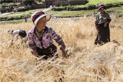 八月起迄,當你翻越西出爐關(guān)第一隘口的折多山,下山十里就會看到山地田野里成熟的青稞、麥子象展開一頁頁金黃的詩篇涌進眼里。那大地山坡起伏驛動的金箔等待著走進主人的碉樓……這個時候,正是秋收的開始。