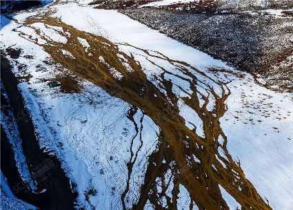 瞰康定甲根壩雪景賞亞洲最大鈣化灘