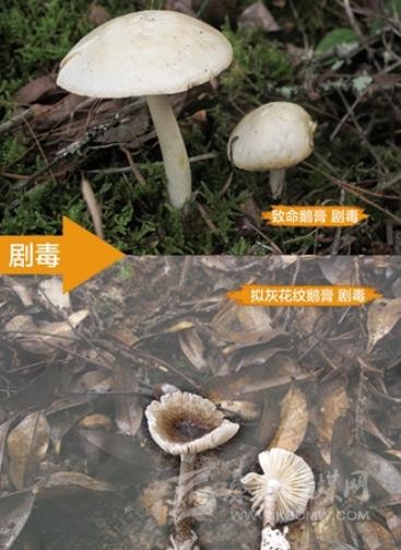 含劇毒的致命鵝膏和擬灰花紋鵝膏。圖片來(lái)源:中國(guó)疾病預(yù)防控制中心