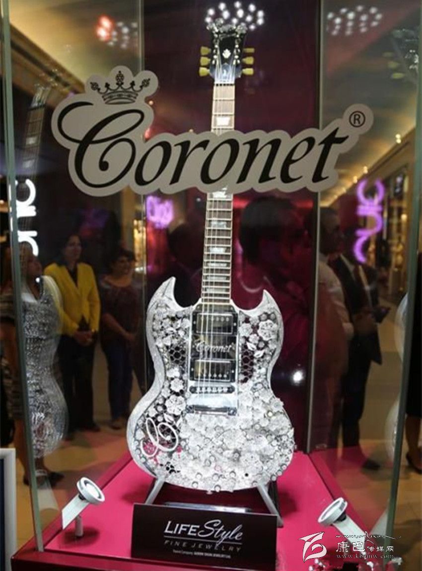 這件鉆石吉他由中國香港著名音樂人雷頌德設(shè)計(jì),周大福珠寶公司與吉布森吉他公司合作出品,用400克拉鉆石和1.6公斤黃金鑲嵌打造而成,總價(jià)值達(dá)200萬美元(約合1300萬元人民幣)。