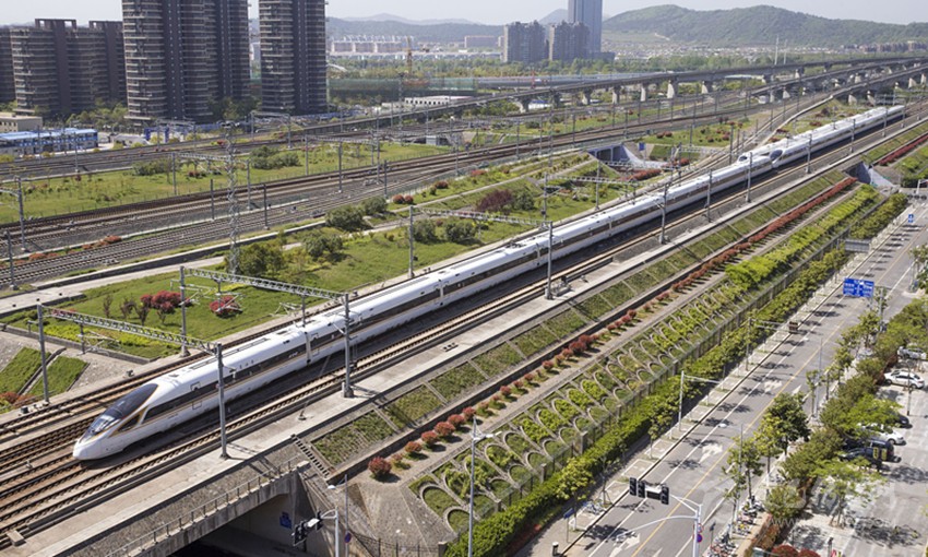 一列“復興號”動車組列車行駛在京滬高鐵南京市境內(nèi)。 新華社發(fā)