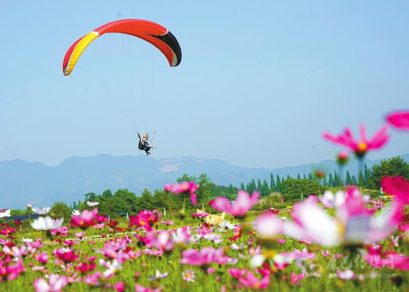 5月4日,游客在浙江省金華市武義縣大斗山飛行營地體驗(yàn)滑翔傘?!拔逡弧毙¢L假期間,許多人選擇到戶外與大自然親近。新華社發(fā)