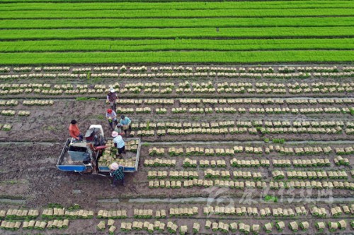 江蘇揚(yáng)州的農(nóng)村正使用機(jī)械起秧。 沈冬兵/人民圖片