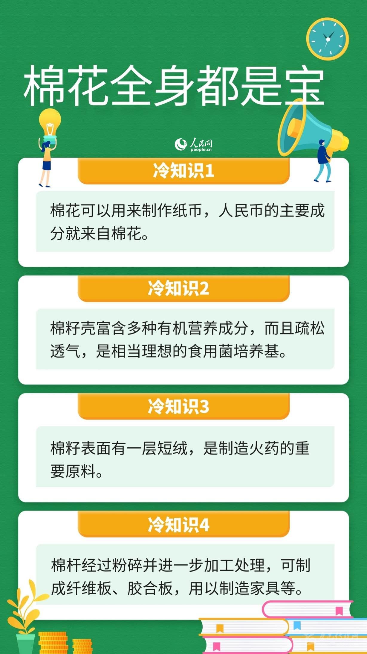 “棉花全身都是寶”。超過90%的棉花在紡織業(yè)“工作”,成為各類衣服、家具布和工業(yè)用布;人民幣的原材料是棉花;棉桿可用于制造家具。這些關(guān)于棉花的冷知識你知道嗎?