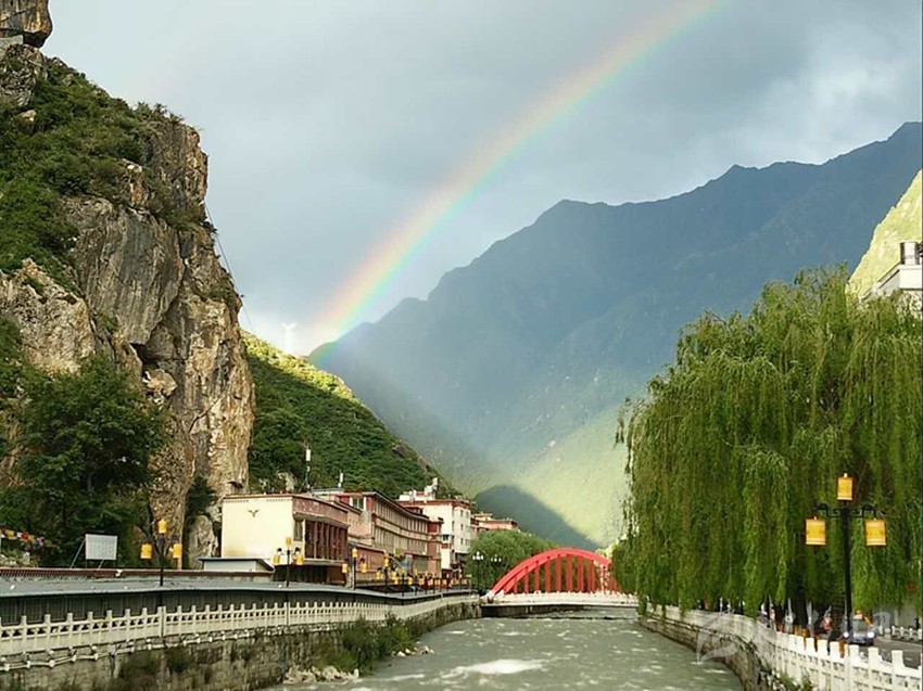 6月4日下午18時55分左右,康定東關(guān)突然出現(xiàn)兩道美麗的彩虹。過往人們紛紛駐足觀看,許多人拿出手機記錄這美麗的景色。這次出現(xiàn)的彩虹在康定很多地方都能看見,下橋、大禮堂、阿里布果都能看見。ps:啥是雙虹!虹是大氣中的一種光的色散現(xiàn)象。太陽光是由赤橙黃綠青藍(lán)紫七種不同的光線組成的,由于它們的波長不同,當(dāng)雨后太陽光射入空氣中的水滴時,水滴對不同波長的光線接受程度不同,經(jīng)過水滴表面發(fā)生曲折,然后再由水滴內(nèi)壁重復(fù)地折射出來,這樣經(jīng)過水滴的折射,分光,內(nèi)反射,再折射等,太陽光的七種顏色便被分散開,就形成了彩虹。如果太陽光經(jīng)過水滴的兩次反射,兩次折射才射出水滴,便形成了雙虹。