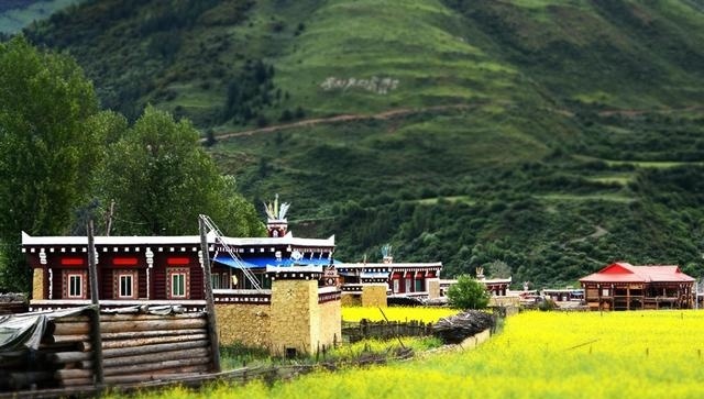 走進(jìn)這座別致的高原城市,首先呈現(xiàn)在你面前的就是那鱗次櫛比的藏式民居。這些民居外表主要由棕白兩色構(gòu)成,白色的屋頂,白色的主墻,木結(jié)構(gòu)處多用棕色顏料染涂,其間配以紅色、藍(lán)色圖案,在藍(lán)天、白云、青山、綠水的輝映下,仿佛幻化成妙不可言的積木圖案。這里的民居修得美輪美奐。如果不是親眼見到,還一定會(huì)認(rèn)為這令人眩目的房屋是夢(mèng)境。這就是道孚民居,被譽(yù)為散落人間的仙境皇宮。