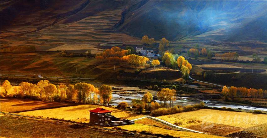 來甘孜賞秋色,怎么能不先做好攻略設(shè)計?其實(shí)從八月起,秋天的腳步就已經(jīng)來臨,它最先光臨高原的青稞田地,時間每過去一天,秋日的艷陽將雨季趕得越遠(yuǎn),湛藍(lán)的天空下翻滾起來金黃色的麥浪,一直綿延到雪山腳下。深秋炫目過于不食人間煙火,其實(shí)我更喜歡田野里的秋天,有家的溫暖味道。炊煙從藏房民居的屋頂升起,風(fēng)吹麥浪的聲音也壓不過孩子們在田野的歡笑,開始準(zhǔn)備秋收了,又是一次鄉(xiāng)鄰們的聚會,他們揮舞著鐮刀,在歌聲和笑聲中灑下對大地和生活的感恩熱愛。