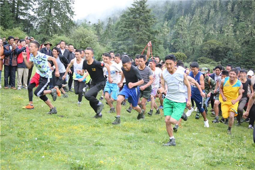 徒步穿越邀請賽是九龍縣委、縣政府主辦的2018年群眾文藝匯演暨甘孜州山地旅游節(jié)之圣湖祈福·第三屆伍須海游海節(jié)活動的主要內(nèi)容之一。140多名參賽選手和幾百名旅游愛好者一早來到伍須海邊,置身于云霧繚繞的山巒之間,共同見證賽事啟幕。在宣布比賽規(guī)則后,隨著裁判一聲哨響,參賽選手從郁郁蔥蔥、芳華吐露的伍須海岸的上草壩奔向山峰,經(jīng)過伍須海、海臺景點(diǎn),最終到達(dá)風(fēng)景名勝日魯庫。在11公里的山路中,參賽選手將爬越4200多米的高峰,穿越古老蔥郁的原始森林,感受高山杜鵑和高原野花的麗姿,與窸窣的鳥鳴為伴,在競賽的同時,樂享藏彝走廊的無盡魅力。