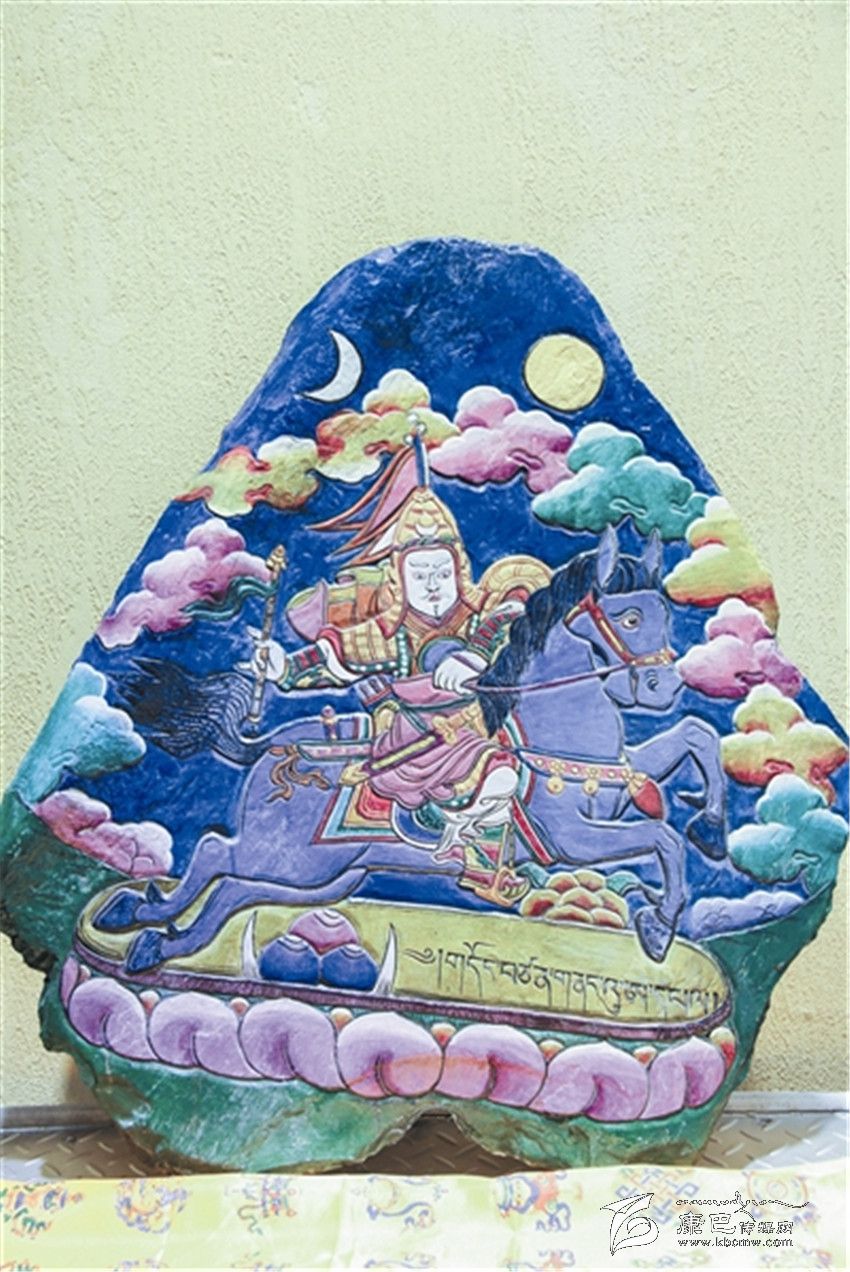 據(jù)了解,格薩爾彩繪石刻是藏族民間美術(shù)中的一門(mén)創(chuàng)新藝術(shù),它不僅是格薩爾文化的一種新的傳承方式,也填補(bǔ)了格薩爾文化在藏族石刻中的空白。格薩爾彩繪石刻刀法精細(xì),取材考究,在采用鑿刻、直刻、斜刻刀法的同時(shí),注重磨刻、磨劃技術(shù)效果,使石刻畫(huà)構(gòu)圖和諧。在石刻畫(huà)上采用了彩繪工藝,這樣既增加了畫(huà)面視覺(jué)的藝術(shù)感和光澤度,又可以起到保護(hù)作用。