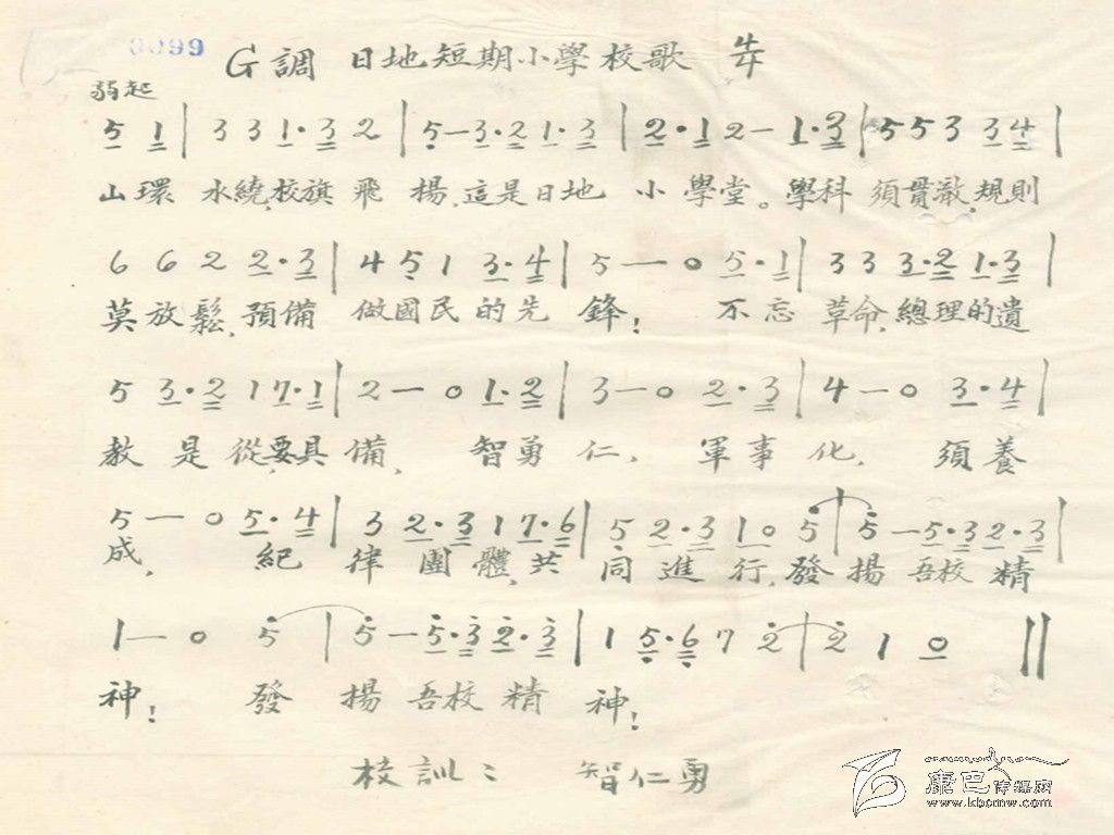 日地短期小學(xué)依據(jù)自己學(xué)校的校訓(xùn)“智仁勇”寫(xiě)成的校歌。