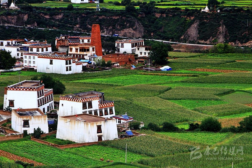 鄉(xiāng)城,這塊尚未被旅游熱烤的處女地,處處散發(fā)純真的氣息。走進鄉(xiāng)城,除了頗具江南之韻的山水田園風(fēng)光。首先映亮你眼簾的,便是依山傍水的白色藏寨。春暖花開的日子里,波光粼粼的小河蜿蜒蛇行于谷地,一座座白藏房沿河散布,隨意而自然地排成村落。散在風(fēng)里的炊煙中,似如飄著一縷青稞酒的“糧香”。步入青稞地里,心曠神怡中,偶爾聽見幾聲愉悅的勞動號子里裹著清亮聲弦、山歌余音……。此情此景,誰又能不為白色村落締造者的神來之筆而嘆服?讀過古書名詞的人都會想到一個詞——世外挑源,而熟悉藏傳佛經(jīng)的人,則會為找到傳說中人間凈土——“香巴拉”而激動不已。
