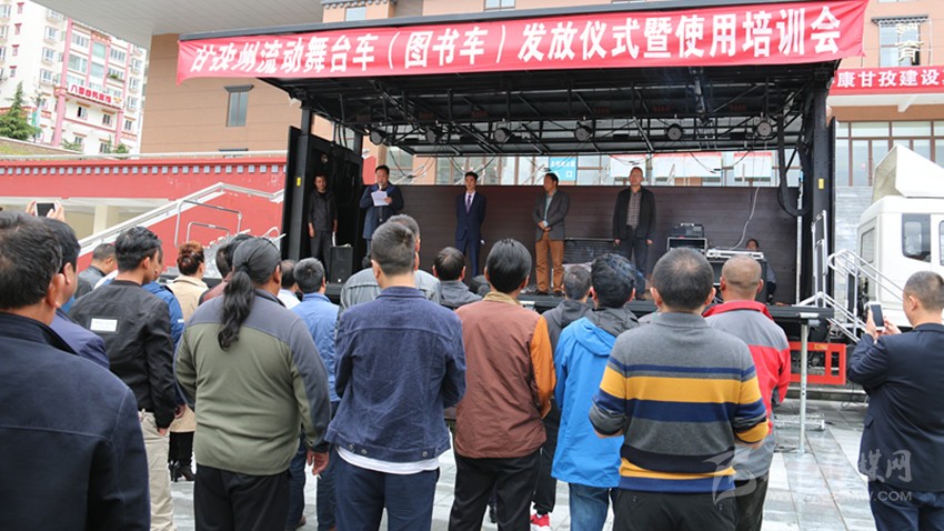 本網(wǎng)訊(記者 宋志勇 文/圖)6月22日,我州流動(dòng)舞臺車(圖書車)發(fā)放儀式暨使用培訓(xùn)會(huì)在康定舉行,旨在為全州13個(gè)縣(市)及州歌舞團(tuán)、州圖書館統(tǒng)一配發(fā)流動(dòng)舞臺車、圖書車,著力解決基層群眾看文藝演出難、看圖書難以及文藝表演團(tuán)體下鄉(xiāng)演出搭臺難、轉(zhuǎn)點(diǎn)難等實(shí)際困難,進(jìn)一步豐富基層農(nóng)牧民群眾文化生活。這是繼全國文化信息資源共享、鄉(xiāng)鎮(zhèn)綜合文化站建設(shè)實(shí)施的又一文化惠民工程。