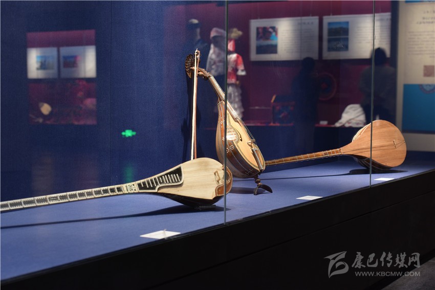 走進(jìn)凹字型的展廳內(nèi),可見蒙古族的馬頭琴、哈薩克族的冬不拉、維吾爾族的手鼓朵帕、回族的掛毯湯壺等。展覽以實(shí)物和圖片相結(jié)合的形式,從“草原驕子”、“刀郎木卡姆”、“駿馬與詩(shī)歌”、“花兒與少年”四部分展現(xiàn)博爾塔拉草原上各民族獨(dú)具魅力的生產(chǎn)方式、衣食住行、傳統(tǒng)技藝、民族服飾、文化娛樂(lè)等民俗風(fēng)情,為觀眾呈現(xiàn)了博州異彩紛呈的地域文化。