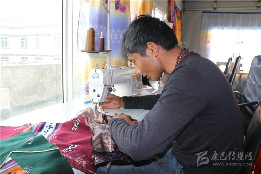 在白玉縣阿察鎮(zhèn)街上,有一處很不起眼的服裝加工店,店里擺放著各色質(zhì)地考究的服裝面料和時尚的藏族服裝。白玉縣祥陽措青年悅民族服飾商貿(mào)有限責(zé)任公司經(jīng)理在熱是納塔鄉(xiāng)納塔村的牧民,他穿著自己生產(chǎn)的藏裝。在工作室里,看到牧民或操作縫紉機、或用手工精心制作藏裝,他露出了開心的笑容。他一再叮囑員工,一定要仔細,要拿出最好的本事,用一流的技藝,不僅要讓顧客滿意,還要打出公司的服裝品牌,質(zhì)量是公司和員工的立身之本。