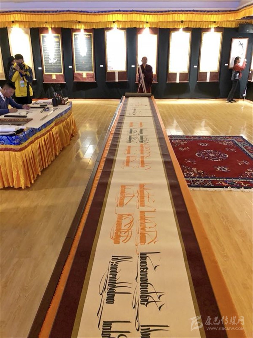 站在“倉央嘉措詩歌藏文書法百米長卷”面前,來自成都的徐賢前感嘆到:“我一直都很喜歡倉央嘉措的詩歌,但從來沒有想過可以通過書畫的形式來展現(xiàn)倉央嘉措詩歌,雖然我看不懂藏文,但是依然感到震撼,這次我真是不虛此行??!”據(jù)了解,在詩歌節(jié)期間,理塘縣電子商務(wù)孵化中心書畫文化廳內(nèi)展出由縣級(jí)非遺卓擦?xí)▊鞒腥?、縣級(jí)非遺噶瑪嘎孜派唐卡傳承人、縣書法協(xié)會(huì)成員等集合而成的近60幅藏漢書畫作品。其中,首次對(duì)外展出的“倉央嘉措詩歌藏文書法百米長卷”引來了眾多參觀者的圍觀。