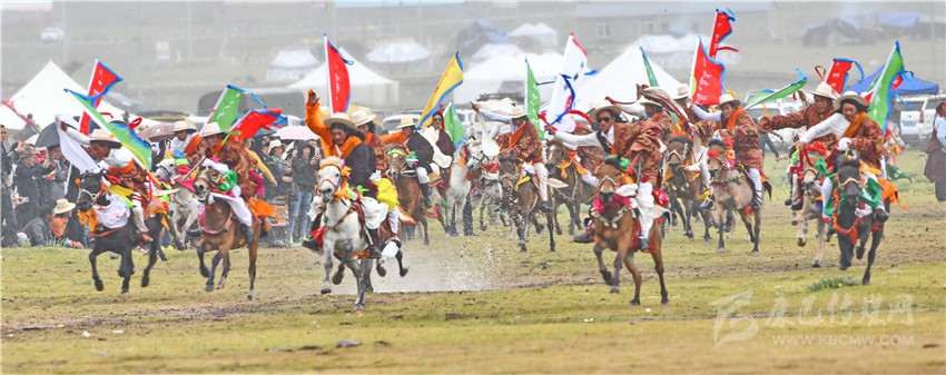 “神駿飛蹄沖云霄,箭過耳畔風(fēng)蕭蕭。眨眼已達(dá)終點(diǎn)線,歡呼聲起似驚濤?!薄@是今年理塘賽馬會(huì)現(xiàn)場最貼切的寫照。8月3日上午,在“馬術(shù)之鄉(xiāng)”的理塘縣八一賽馬場,禮炮聲響還未散盡,來自曲登鄉(xiāng)、高城鎮(zhèn)、格木鄉(xiāng)、奔戈鄉(xiāng)、禾尼鄉(xiāng)及村戈鄉(xiāng)共計(jì)1000名草原騎手齊登場,他們忽而馬背倒立,忽而藏身馬肚,忽而俯身拾哈達(dá),忽而飛槍射擊,繪出一幅壯闊人心的畫面。