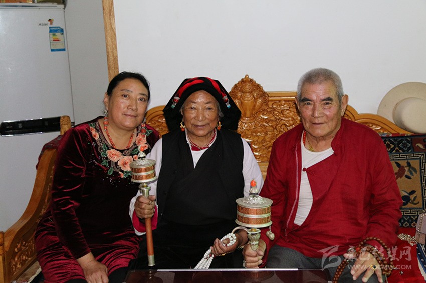 過(guò)了一會(huì)兒,兩位步履蹣跚的老人先后走了進(jìn)來(lái)。其中,一位杵著拐杖,一位搖著經(jīng)筒。“喝茶、喝茶?!币?jiàn)到記者一行,老人十分熱情。