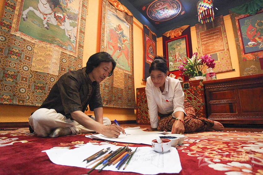 春去秋來,拉孟的畫藝也精進了不少。因為主攻唐卡畫,拉孟有了不少“粉絲”,許多人還專門前來拜師。在拉孟看來,有人學(xué)畫唐卡是好事,自己不該破壞這份美好。于是從1998年起,他便開始免費收徒授藝。