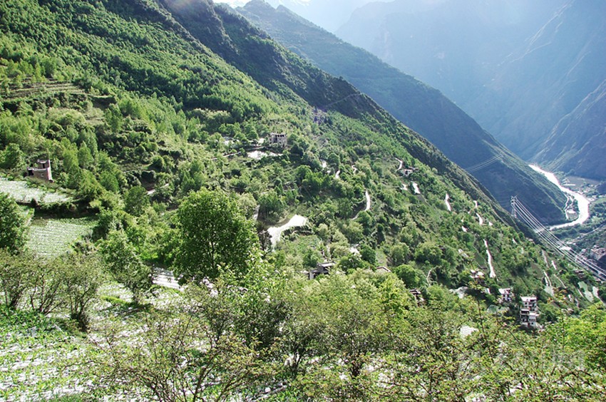 老家的中學(xué)地處峽谷之中,一條小溪從學(xué)校后面的峽谷中奔涌而出。由于這條溝谷里又有九條山脊,因此又稱為九道溝。各條小山谷里的溪流匯合之后,竟然形成了與河流大小相近的水流。當(dāng)流經(jīng)中學(xué)旁時(shí),狹窄的溝谷使得溪流狂躁起來,撞擊著兩岸的山崖,翻卷著浪花,發(fā)出震耳欲聾的聲響。最后匯入小金川河之中,向著遠(yuǎn)處的大渡河奔去。