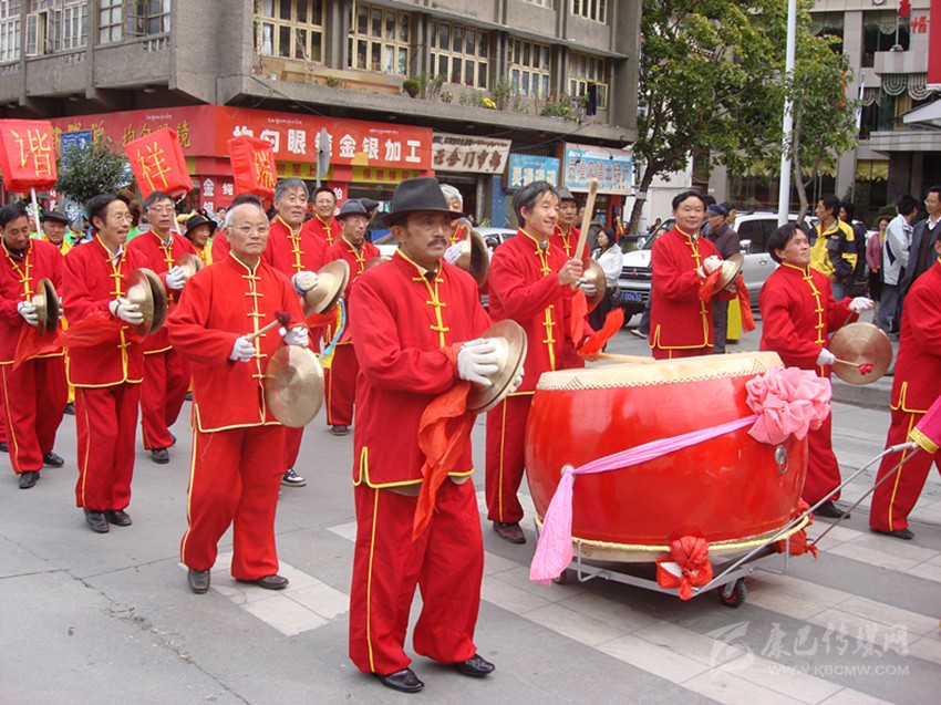 大年三十夜,山谷中的康定城廓鼓聲震天,“鬧山鼓”將過(guò)年的氣氛推向了高潮。當(dāng)年“鬧山鼓”打得最好的是一位人稱(chēng)“韓八爺”的陜西漢子,后來(lái)“韓八爺”打不動(dòng)了,由另一家陜西戶(hù)縣來(lái)的姓徐的人家接替。徐家老父打不動(dòng)了又傳給了徐大哥。到徐大哥操鼓槌時(shí),參與打鼓的已不再全是陜西人了,康定熱愛(ài)這鼓聲的藏、漢、回族漢子也參與進(jìn)來(lái),成了多民族的鼓隊(duì)。這原本屬于陜西戶(hù)縣的“老陜鼓”,如今在戶(hù)縣卻打不全了。徐大哥健在時(shí)說(shuō),“鬧山鼓”鼓譜共有20多節(jié),那年他回戶(hù)縣探親,戶(hù)縣的鼓匠最多只能打一半的鼓譜,而在康定,全套的鼓譜卻被這支多民族的鼓隊(duì)流傳了下來(lái)。