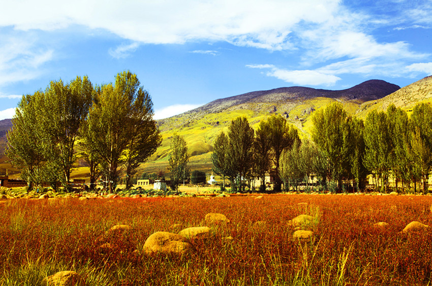 紅草地,“三祜主”鐘愛(ài)的一方小天地,猶如鑲嵌在亞丁仙境胸前的一顆紅寶石。