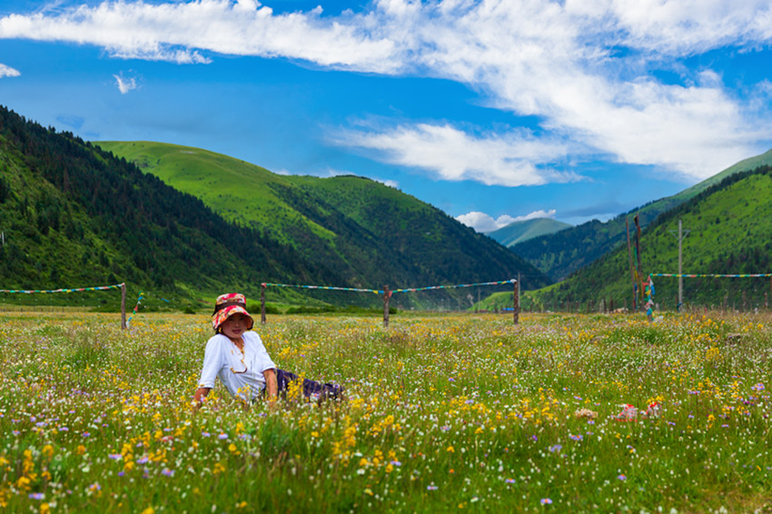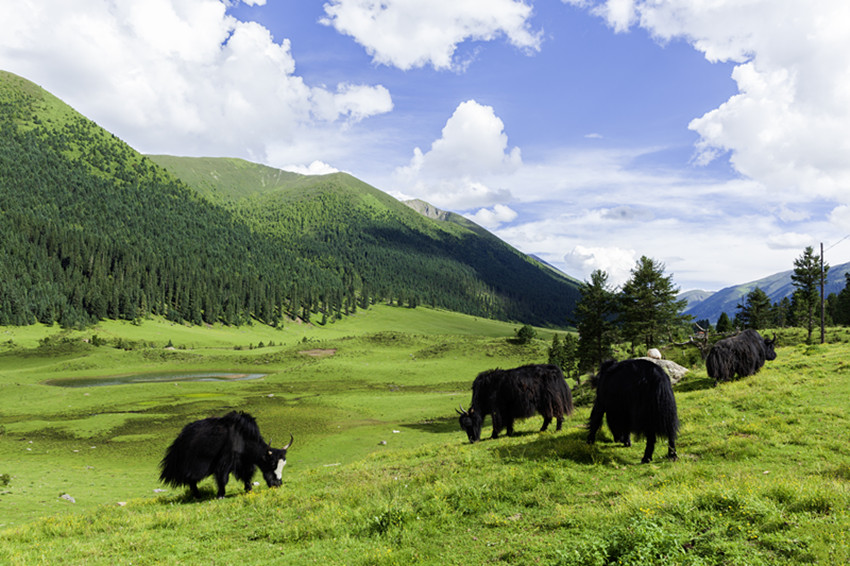 玉科,白猞猁皮鋪展開的長長山谷,依尼山是其心臟,扎拉山脈是其頭,噶科河、瑪科河是其雙臂,惹智塘和曲赤塘是其胸膛,革科和慶切科是其雙腳,措達(dá)以下則是其尾。這片山川地勢,晶瑩的雪峰、郁郁蔥蔥的林海、翠綠的草甸,清澈的碧湖,湛藍(lán)如洗的天空、潔白的云朵,棲息著豐富的珍稀動(dòng)植物,構(gòu)成了一幅如詩如畫、動(dòng)人心魄的原生態(tài)畫卷。一年四季景致千姿百態(tài),美不勝收。夏三月,百花盛開,大地鋪展五彩錦緞。秋三月,一片金黃,映襯得山崗黃燦燦。冬三月,雪花翻飛,大地銀裝素裹。難怪旅游達(dá)人們要驚呼,贊美這里是甘孜的阿勒泰。