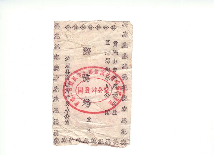 我有心收藏海螺溝旅游開發(fā)建設(shè)三十年來不同時(shí)期、品相各異的門卷、門票數(shù)枚。門卷、門票是游客進(jìn)入景區(qū)的憑證,也是景區(qū)的“臉面”。在我收藏的門卷、門票中有一枚海螺溝景區(qū)第一代門卷。構(gòu)圖簡單,白底黑字的第一代門卷,雖然在歲月中褪去了鮮色,但在方寸之間卻承載著海螺溝景區(qū)建設(shè)最初的時(shí)光和開發(fā)建設(shè)者的記憶,更是瀘定縣三十年前發(fā)展旅游的歷史見證。一晃三十年光陰,至今我對(duì)海螺溝景區(qū)第一代門卷的來歷,還記憶猶新。