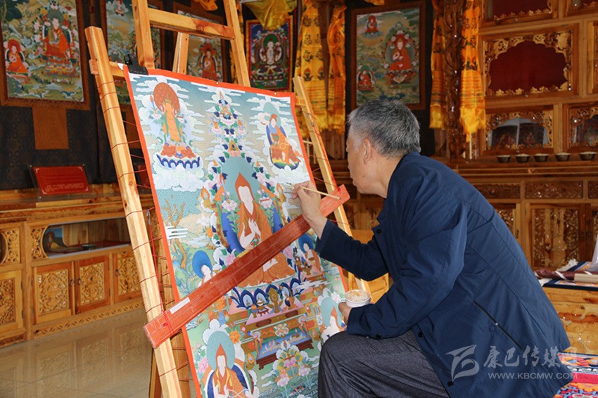 顏登澤仁,我州國家級嘎瑪噶孜唐卡畫派傳承人、省藏校教師。2017年3月,北京大學(xué)文化資源研究中心、中國非物質(zhì)文化遺產(chǎn)推廣中心組織他與另外八位唐卡大師及一位顏料大師共同完成《十明圖》唐卡創(chuàng)作。截至今日,距離他完成兩幅唐卡創(chuàng)作剛好一個月。