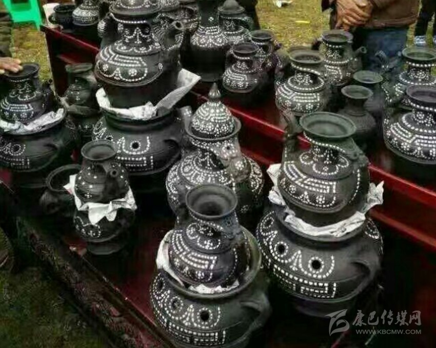 宗教佛事用陶具的制作和用途有明確規(guī)定,當(dāng)?shù)匕傩赵诿磕瓴貧v新年前夕均要制作佛事用具。以戶為單位,每戶3件,其明顯特點(diǎn)是顏色都有別于黑陶,多采用白色作陪襯。制作好的佛事陶具于藏歷新年初五送往寺廟,由寺廟高僧做法事,擇日,在太陽出來前將陶具置于河中深水處,祈禱來年風(fēng)調(diào)雨順、人們幸福安康。