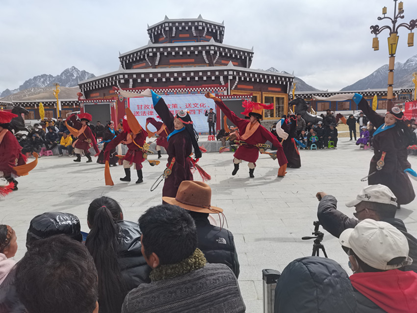 這邊搭起咨詢臺(tái)為群眾送衛(wèi)生、送科技、送法治,那邊搭起舞臺(tái)為群眾奉上了一場(chǎng)精彩的文藝表演。本土山歌《甘孜山歌》、獨(dú)唱原創(chuàng)歌曲、舞蹈《甘孜踢踏》《嶺·卓》等群眾喜聞樂(lè)見(jiàn)的節(jié)目輪番登場(chǎng),贏得陣陣掌聲。