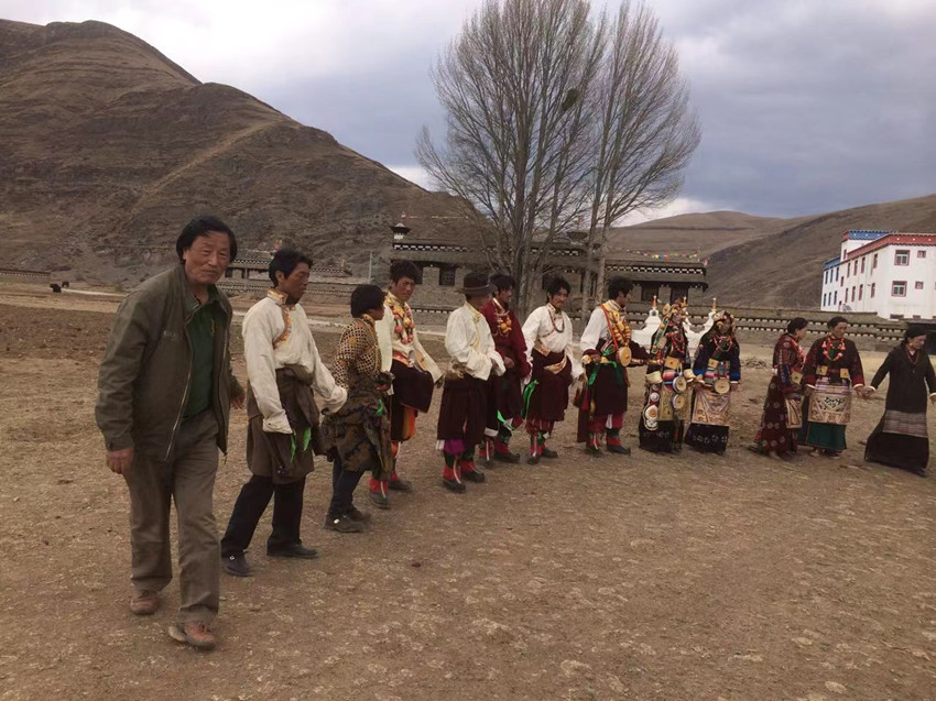 2016年,拉薩地區(qū)開展拉薩河流域文化遺產(chǎn)搶救收集整理工作,秋加措受邀承擔(dān)此任,帶領(lǐng)團(tuán)隊(duì)深入拉薩及拉薩周邊,收集整理拉薩的堆諧100余首,囊瑪70余首,藏戲4部,對(duì)拉薩地區(qū)的民間藝術(shù)有了直接廣泛的了解和研究,進(jìn)一步豐富自己民族民間藝術(shù)知識(shí)庫,為創(chuàng)作增添新的助力。