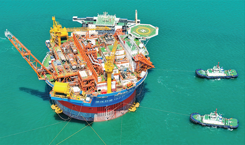 “海葵一號”,是亞洲首艘圓筒型浮式生產(chǎn)儲卸油裝置。該裝置集原油生產(chǎn)、存儲、外輸?shù)裙δ苡谝惑w,被網(wǎng)友們昵稱為“超級能源碗”,也是完全由我國自主設(shè)計建造的海上油氣加工廠。圖為2024年5月12日,“??惶枴睆闹袊S颓鄭u國際化高端裝備制造基地離港啟運。 人民圖片 張進(jìn)剛/攝