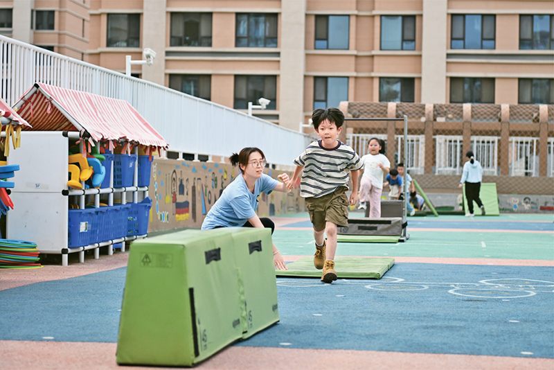 近年來,河北雄安新區(qū)通過創(chuàng)新教育發(fā)展體制機(jī)制、高標(biāo)準(zhǔn)配建教育設(shè)施、引入專業(yè)教師隊伍、引進(jìn)優(yōu)質(zhì)教育資源等方式,不斷推動教育高質(zhì)量發(fā)展。圖為2024年5月23日,當(dāng)?shù)赜變簣@的孩子們在室外活動。 新華社記者 牟宇/攝