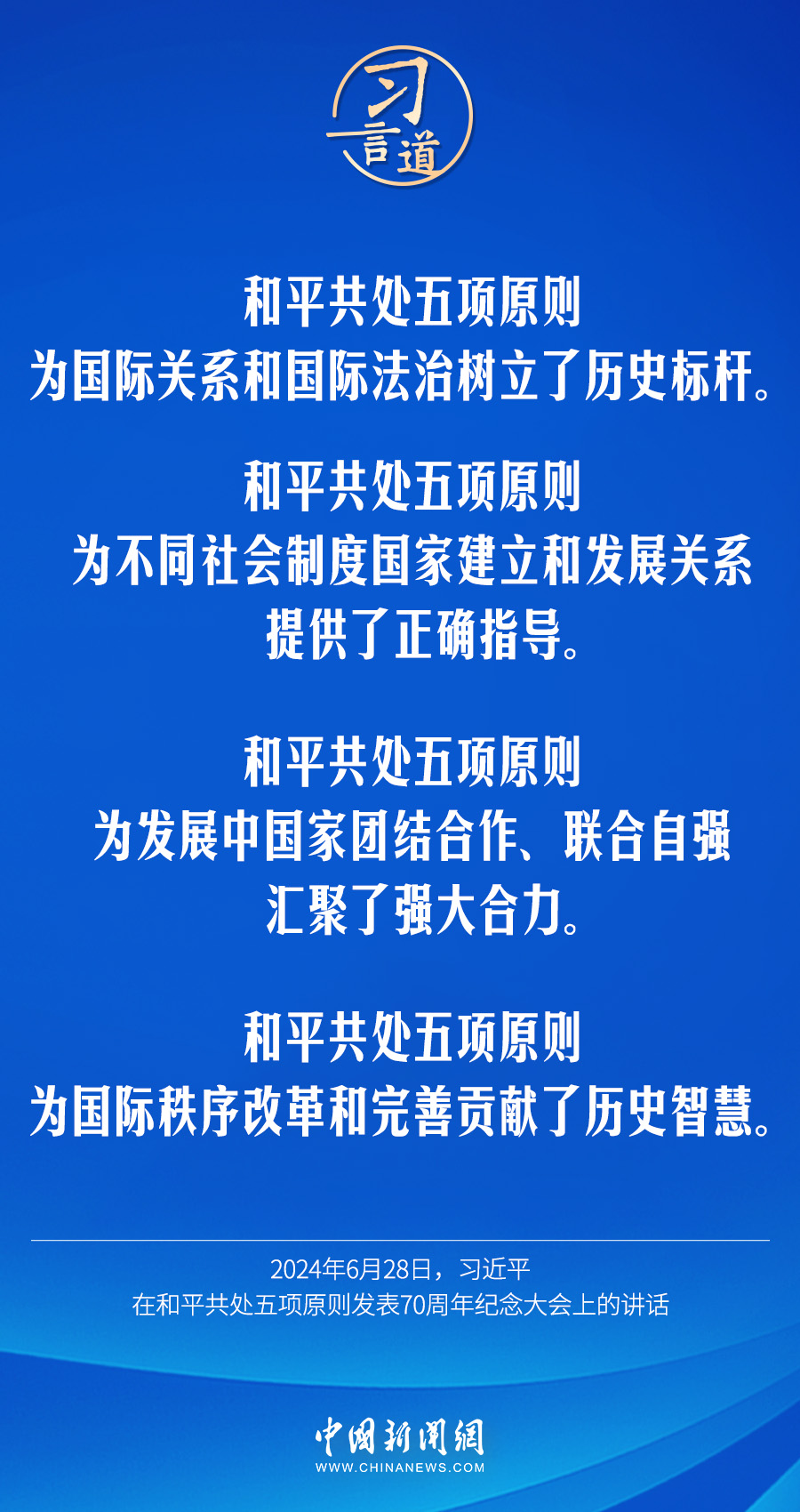 6月28日,國家主席習(xí)近平在北京人民大會堂出席和平共處五項原則發(fā)表70周年紀念大會并發(fā)表重要講話。習(xí)近平指出——