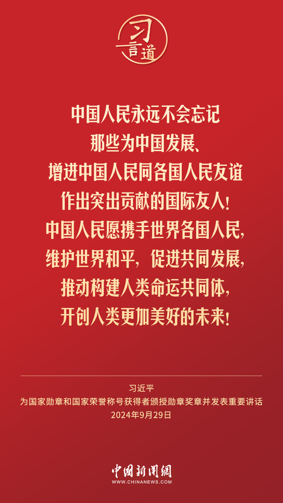 經(jīng)中共中央批準,中華人民共和國國家勛章和國家榮譽稱號頒授儀式于9月29日上午10時在人民大會堂隆重舉行。中共中央總書記、國家主席、中央軍委主席習近平向國家勛章和國家榮譽稱號獲得者分別授予“共和國勛章”“友誼勛章”和國家榮譽稱號獎章并發(fā)表重要講話。習近平指出——